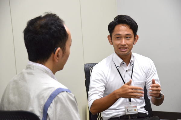 (Mr. Yoshida) I think his strong sense of responsibility leads to his position as captain of the national football team. Our President, Mr. Tsuruta, introduced that Mr. Furushima will participate in the Deaflympics the other day, and the supportive mind within our company is increasing. He does not mention it but I am sure it is tough to carry the burden of being a member of the national team while carrying out his everyday work. I really hope he can do his best at the Deaflympics.
